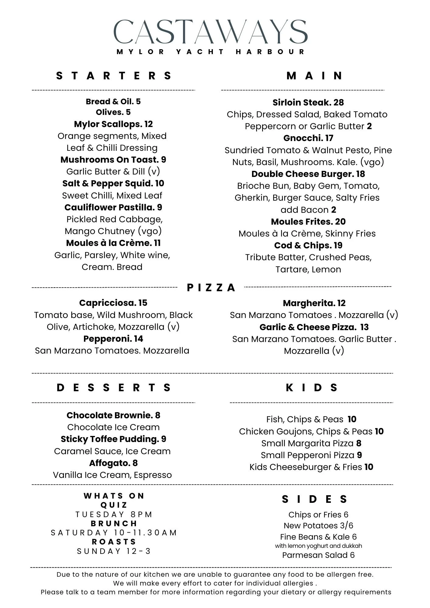 We cater for every need at Castaways you can enjoy a different dish every week. We look forward to welcoming you to our little hidden gem! Book online here!