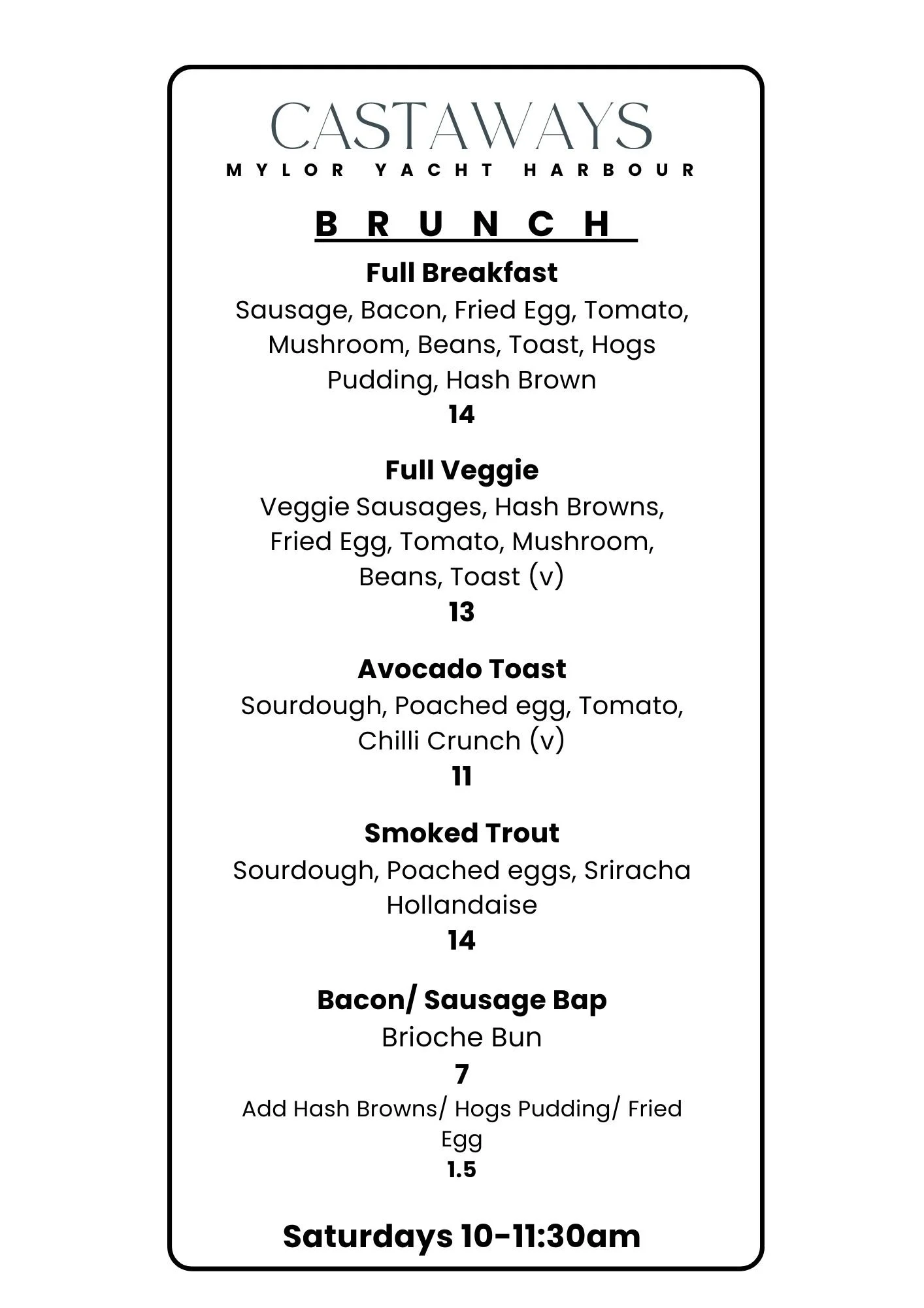 Saturday Brunch 10am-11.30am